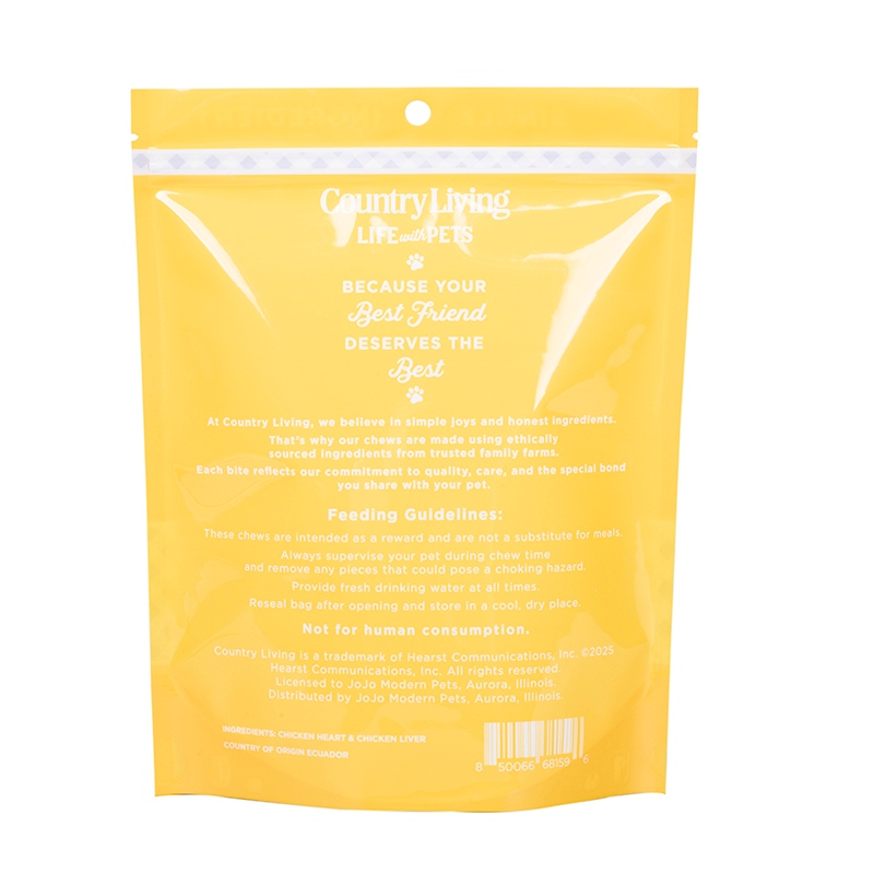 Der von Wanle Packaging hergestellte Hochglanz-Standbodenbeutel für Hundefutter in China entspricht vollständig den Sicherheitsstandards für den Kontakt mit Tiernahrung und weist keinen Geruch oder schädliche Rückstände auf. Es kann für verschiedene Trockenfuttermittel für Hunde, körniges Hundefutter und Hundefutter mit gemischten Geschmacksrichtungen verwendet werden. Es schafft ein Gleichgewicht zwischen Schutzleistung und optischer Qualität, bietet eine sichere Aufbewahrungslösung für Hundefutter und verbessert gleichzeitig die visuelle Wiedererkennung des Produkts.
