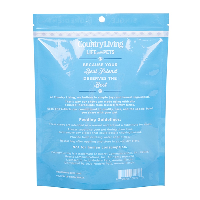Die Siegelleistung ist zuverlässig, die Beutelöffnung ist mit hochwertigen selbstdichtenden Komponenten ausgestattet, die ein reibungsloses Öffnen und einen dichten Verschluss ermöglichen. Auch nach mehrmaligem Gebrauch kann eine gute Versiegelungswirkung aufrechterhalten werden, wodurch das Eindringen von Feuchtigkeit und Luft von außen wirksam verhindert und das Risiko der Oxidation und des Verderbens von Hundefutter verringert wird. Das Material ist flexibel und reißfest, wodurch es im täglichen Gebrauch und bei der Handhabung weniger anfällig für Beschädigungen ist und verschiedene gängige Szenarien bei Lagerung und Transport meistert. Darüber hinaus ist die glatte Oberfläche nicht anfällig für Staubansammlungen, was die Reinigung und Wartung erheblich erleichtert.
